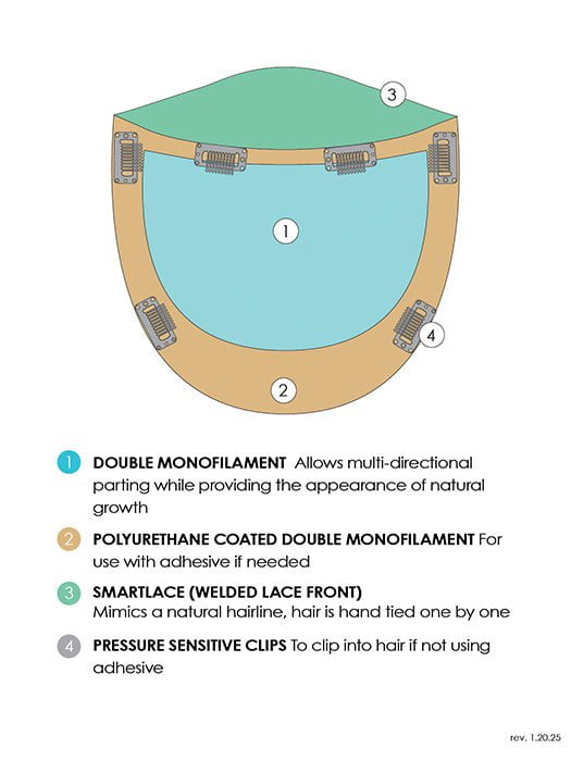 Crafted with 100% Remy human hair, the Top Form Lace 14” offers luxurious texture and styling versatility in a discreet, lightweight topper. Designed for seamless integration, it features a temple-to-temple SmartLace lace front that mimics a natural hairline, eliminating the need to blend your natural front hairline. Graduating density transitions from a light front to medium coverage at the crown and back, providing a flawless, natural look. Perfect for mid-progressive hair loss, the 14” length is ideal for achieving subtle volume and movement.